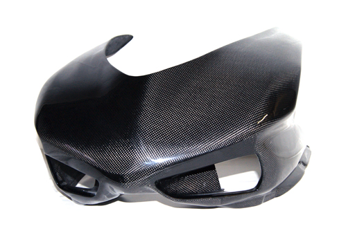 Carbon fiber front fairing oversize air scoops. "PLAIN" fabric (same Ducati Performance). Replacing to the original. Wheigt: 670 gr. Glossy surface finish.