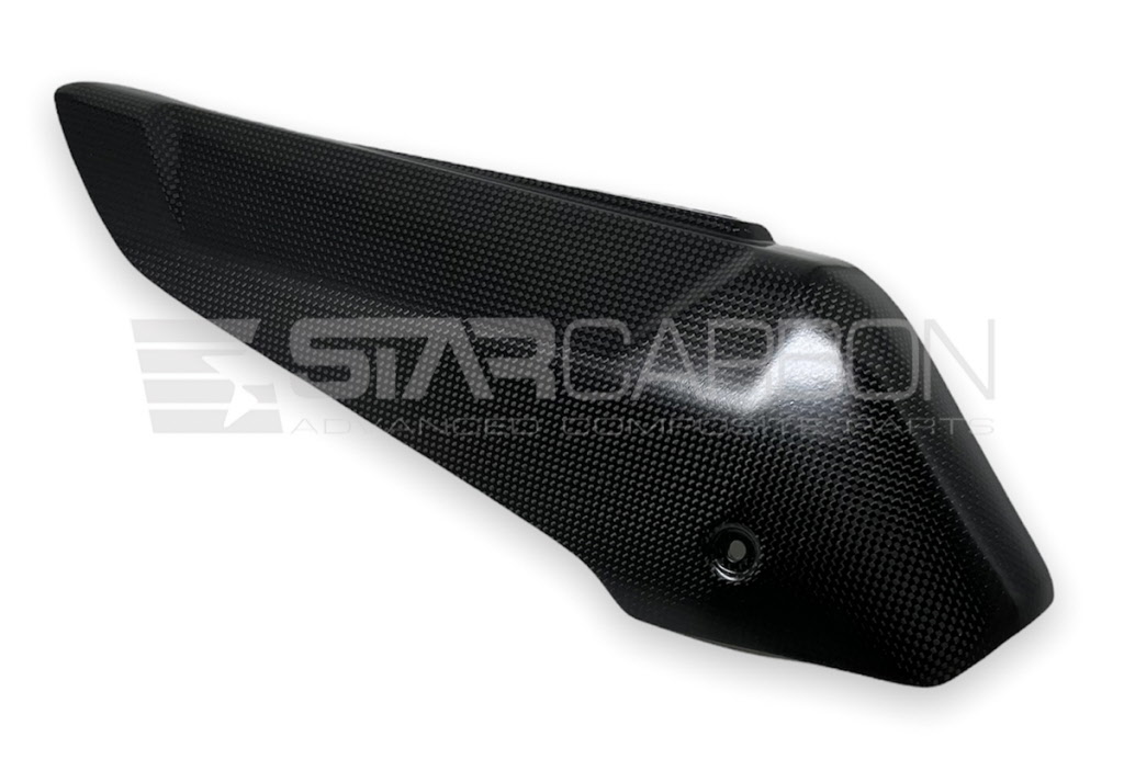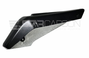 Carbon fiber muffler protection. "PLAIN" fabric (same Ducati Performance). Replacing to the original. Matte surface finish. Wheigt: 170 gr.