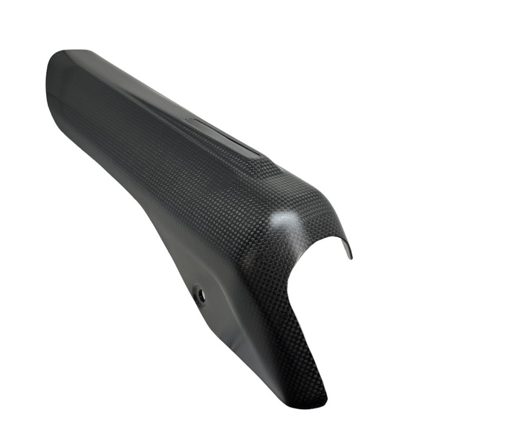 DUCATI MULTISTRADA V4 CARBON FIBER MUFFLER PROTECTION AKRAPOVIC RACING. "PLAIN" fabric (same Ducati Performance.) Replacing to the original. Matte surface finish. Weight: 150 gr.