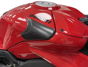 Carbon fiber Fuel Tank protection R+L. "PLAIN" fabric (same Ducati Performance). Carbon/Kevlar inside. Matte surface finish. Wheigt: 45 gr.