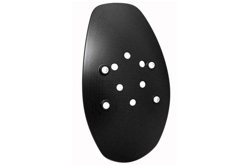 Paraspruzzi posteriore in fibra di carbonio. Trama "PLAIN" (la stessa dei pezzi Ducati Performance). Si sostituisce all' originale mantenendo le stesse viti di fissaggio. Finitura trasparente opaca anti UV. Peso: gr.